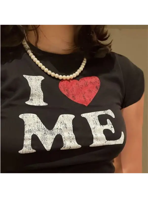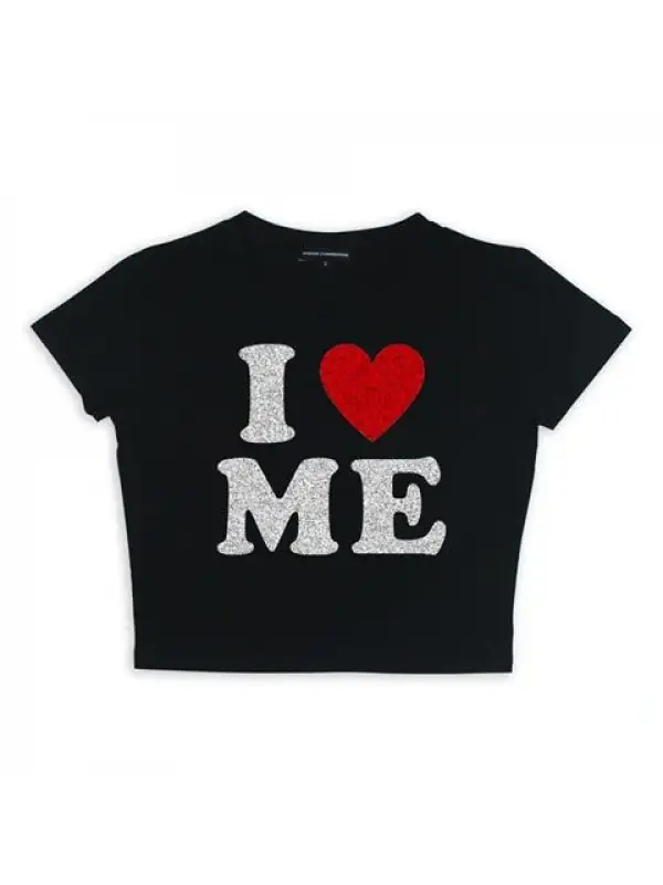 I Love Me Baskılı Siyah Crop