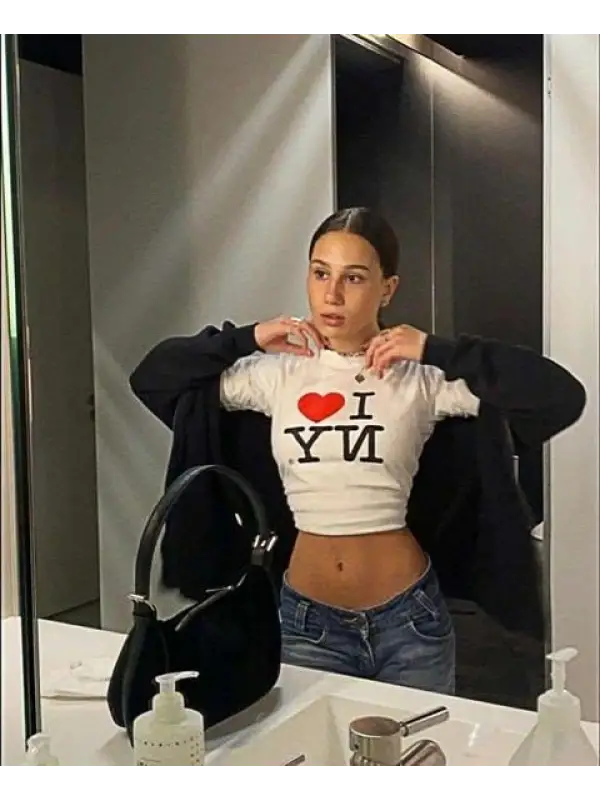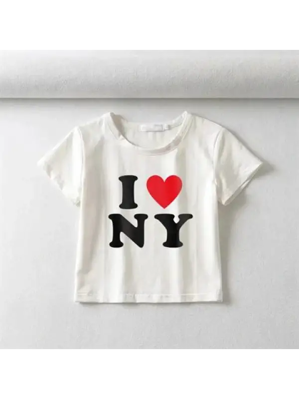 I Love NY Baskılı Siyah Crop