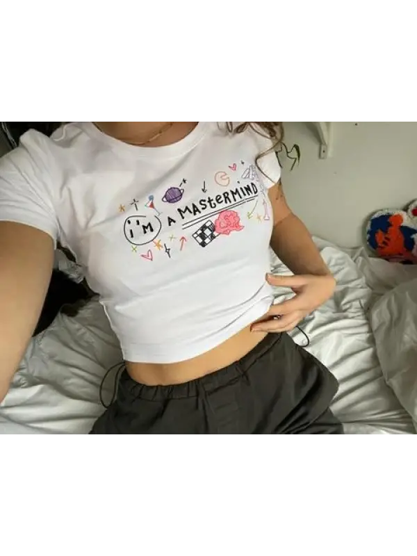 I'm A Mastermind Baskılı Beyaz Crop
