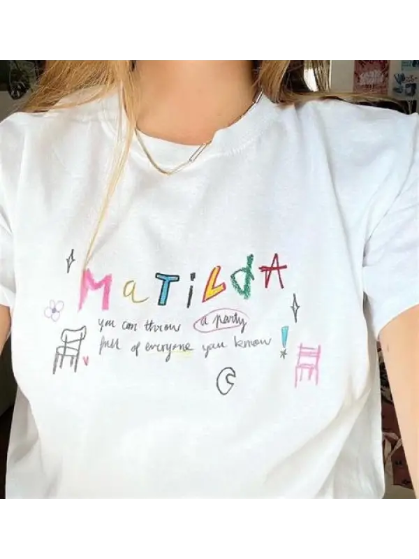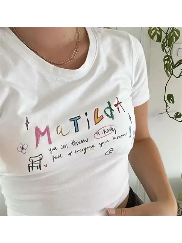 Matilda Baskılı Beyaz Crop