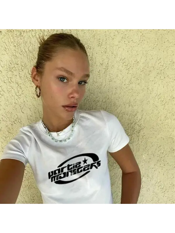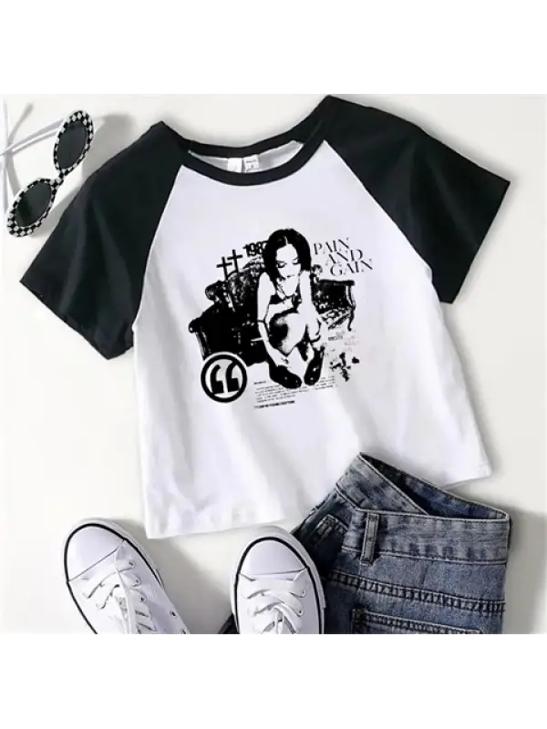 Y2k Pain And Gain Baskılı Beyaz Crop