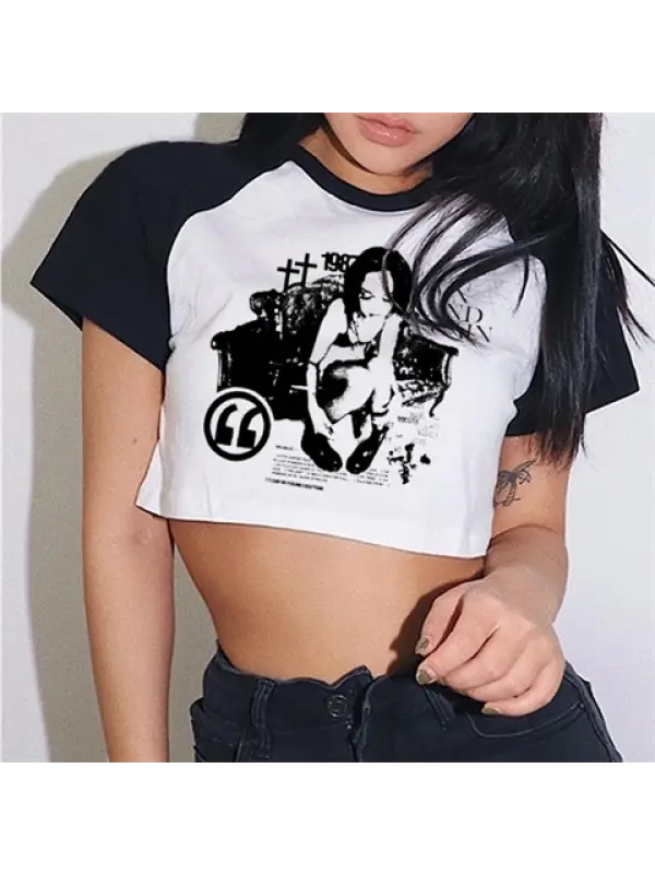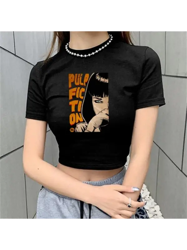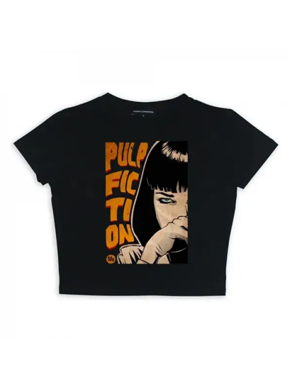 Pulp Fiction Baskılı Siyah Crop