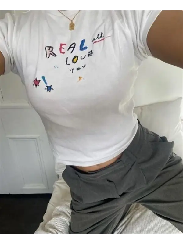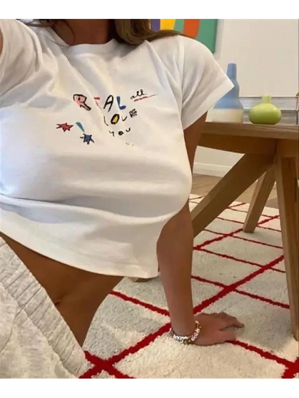 Real Love Baskılı Beyaz Crop