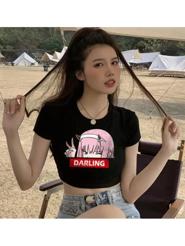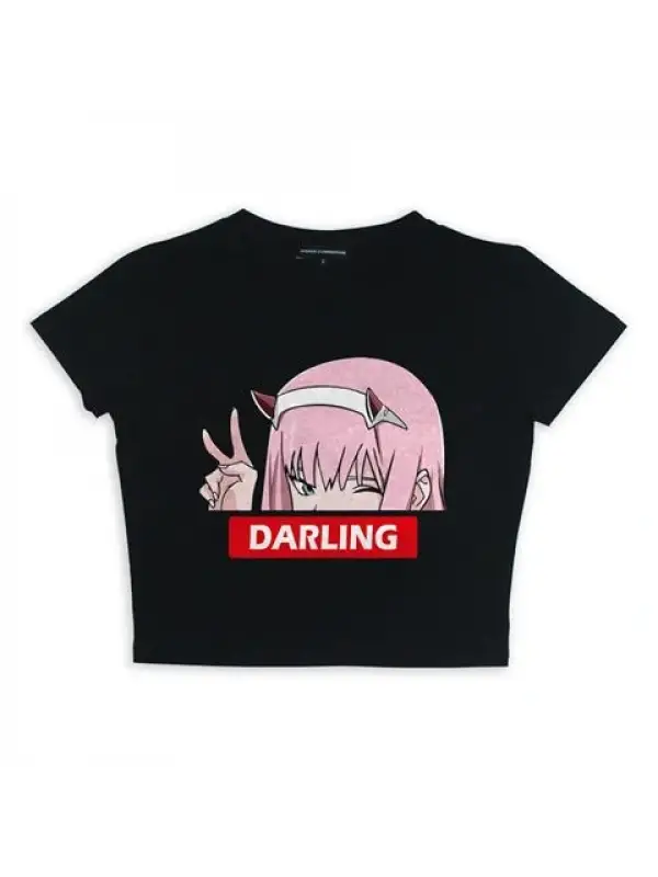 Zero Two Darling Baskılı Siyah Crop