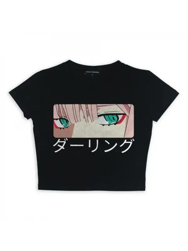Zero Two Eyes Baskılı Siyah Crop