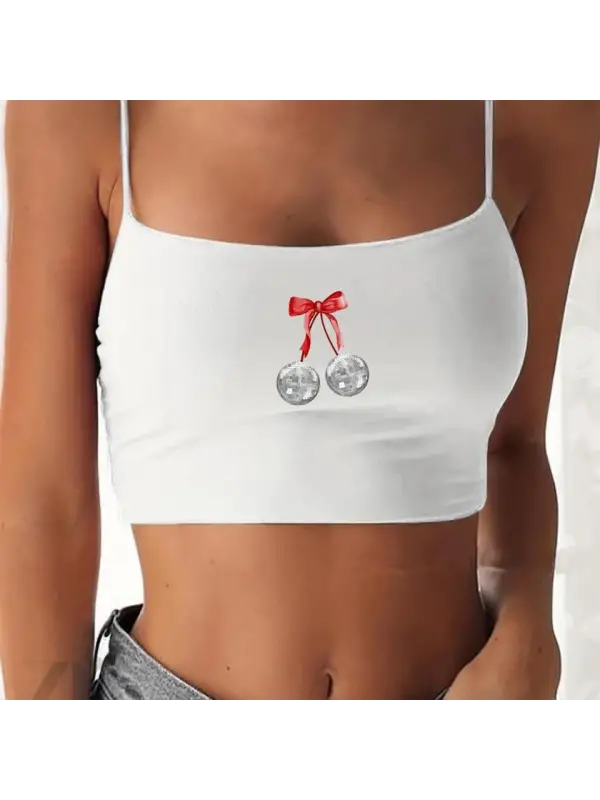 Cherry Beyaz Ip Askılı Büstiyer Crop