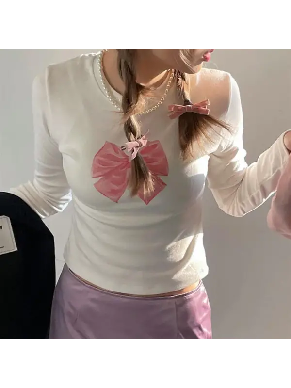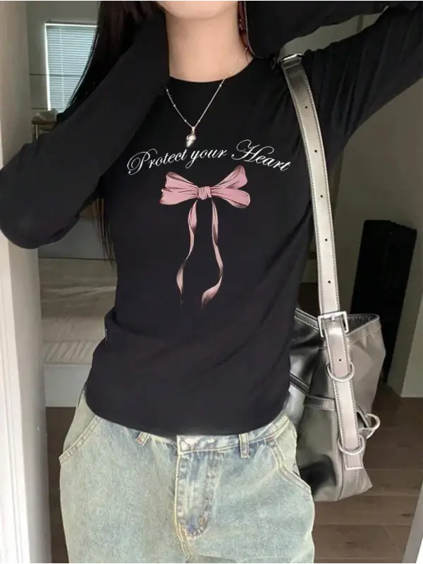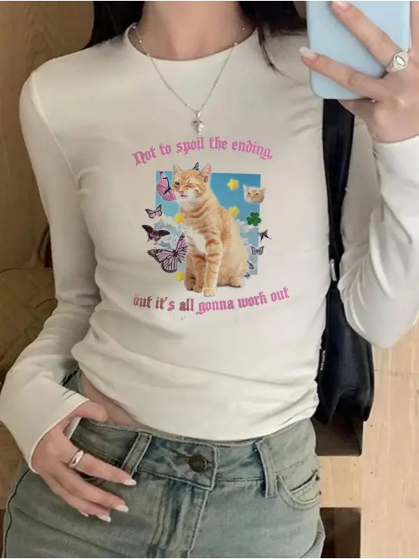 Uzun Kol Cute Cat Baskılı Bluz Body
