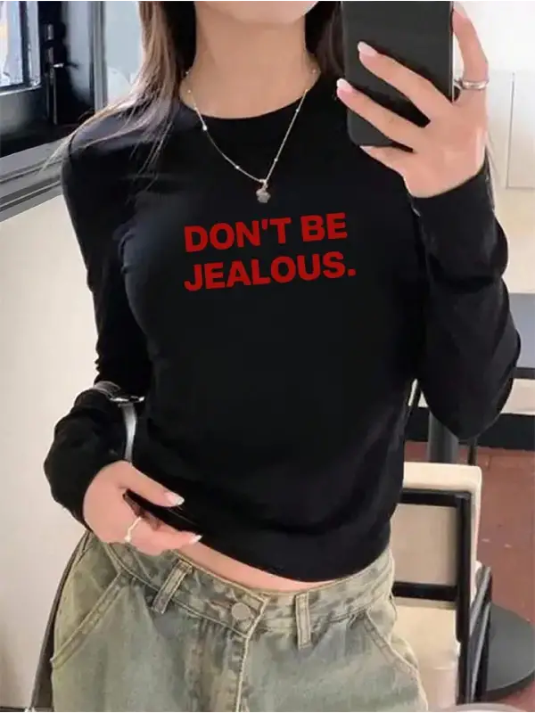 Uzun Kol Don't Be Jealous Baskılı Bluz Body