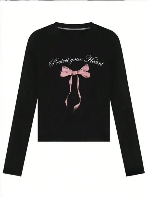 See You Later Şeritli Uzun Kol Baskılı Crop Bluz