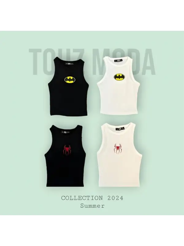 Batman Nakışlı Beyaz Halter Yaka Kaşkorse Crop Top