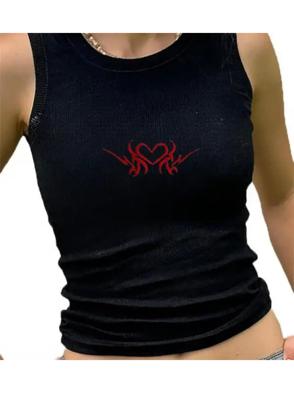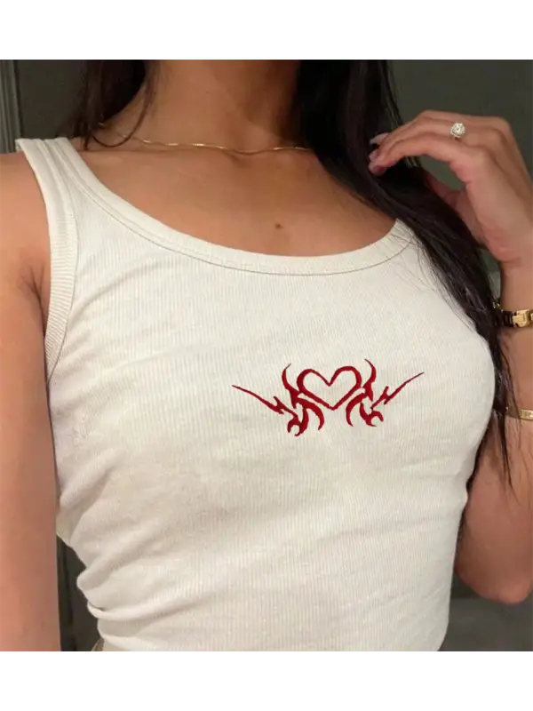 Gothic Heart Nakışlı Beyaz Halter Yaka Kaşkorse Crop Top