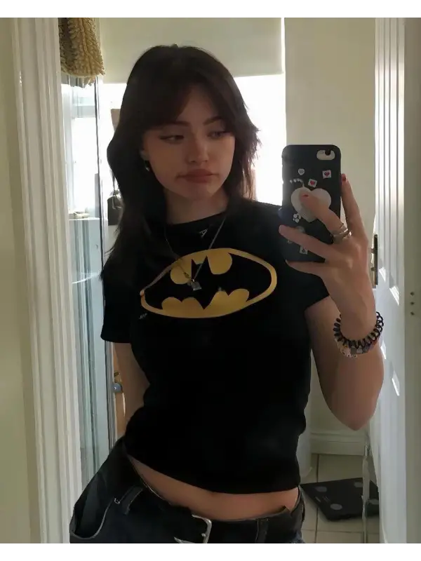 Kemer Boy Batman Detail Baskılı Siyah Crop