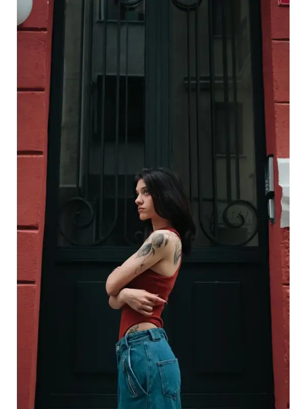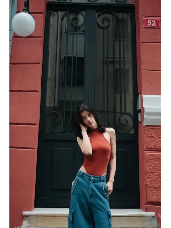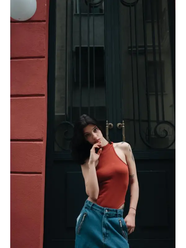Kırmızı Basic Fitilli Detail Crop Bluz