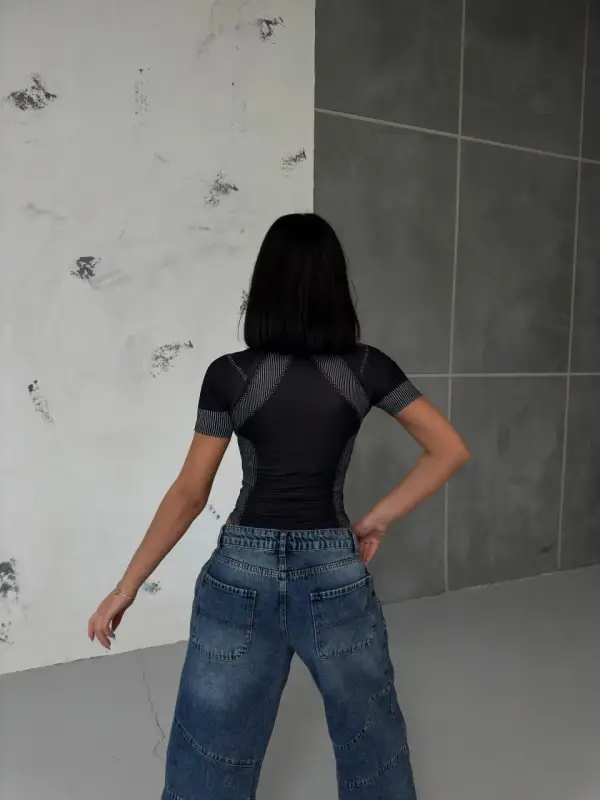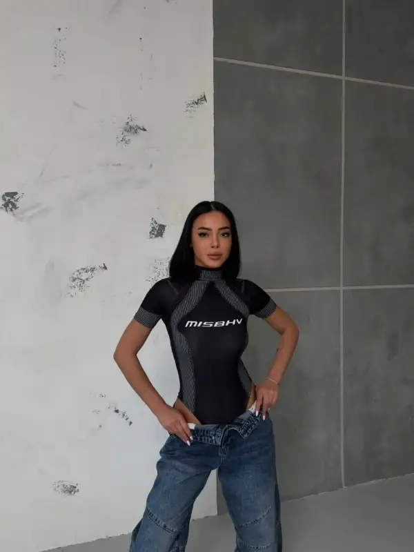 Vintage Black Mısbhv Kısa Kollu Çıtçıtlı Body