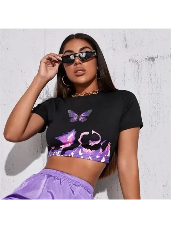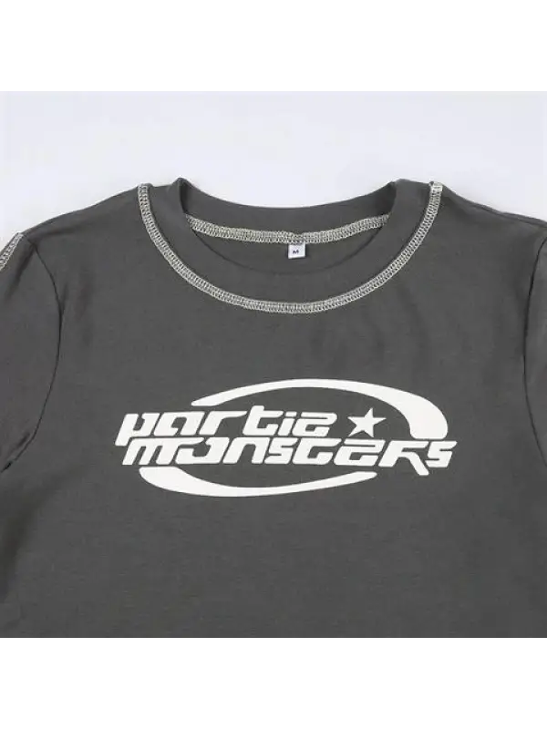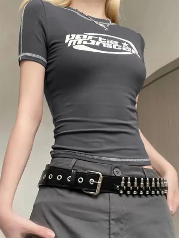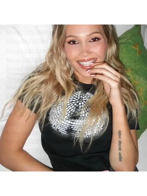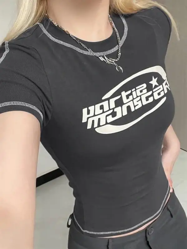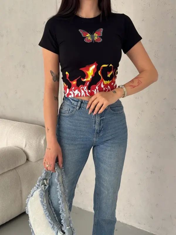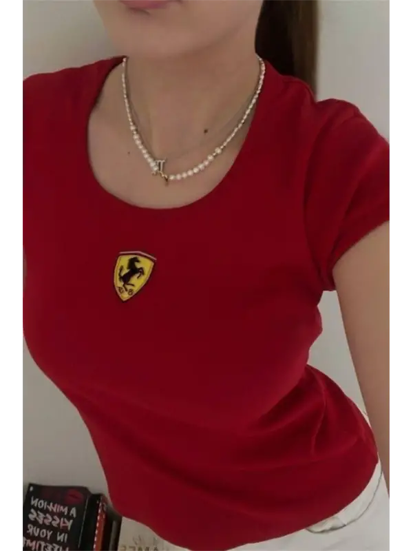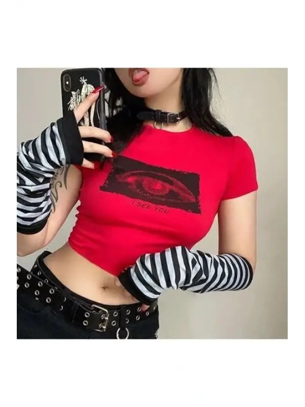Y2k Kırmızı I See You Baskılı Kırmızı Crop Bluz