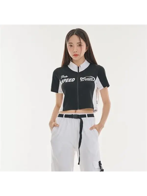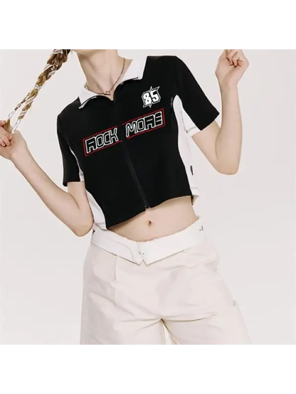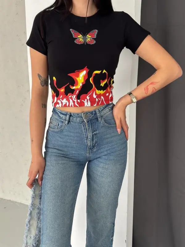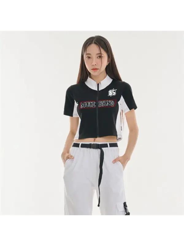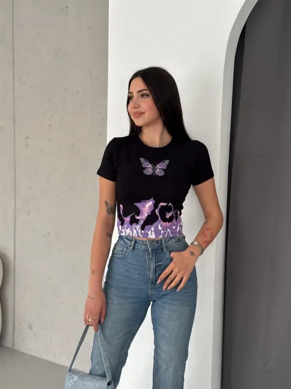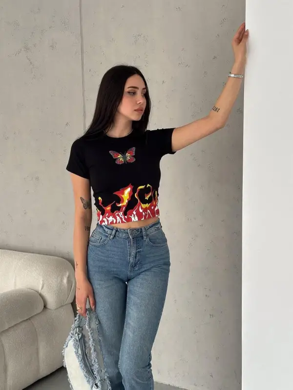 Dream Dijital Baskılı Fermuarlı Crop Bluz