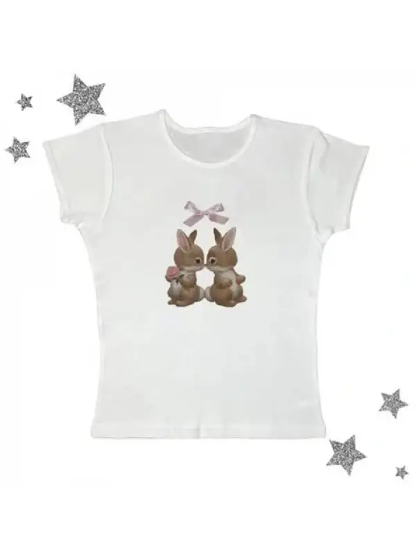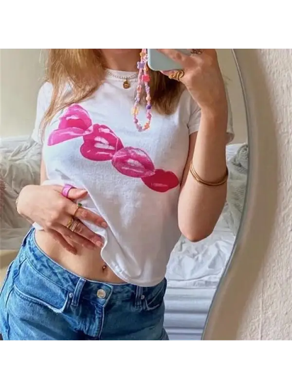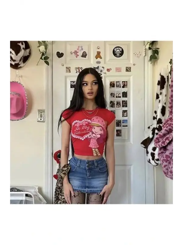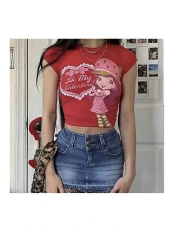 Y2k Be My Valentine Girl Baskılı Kırmızı Crop Bluz