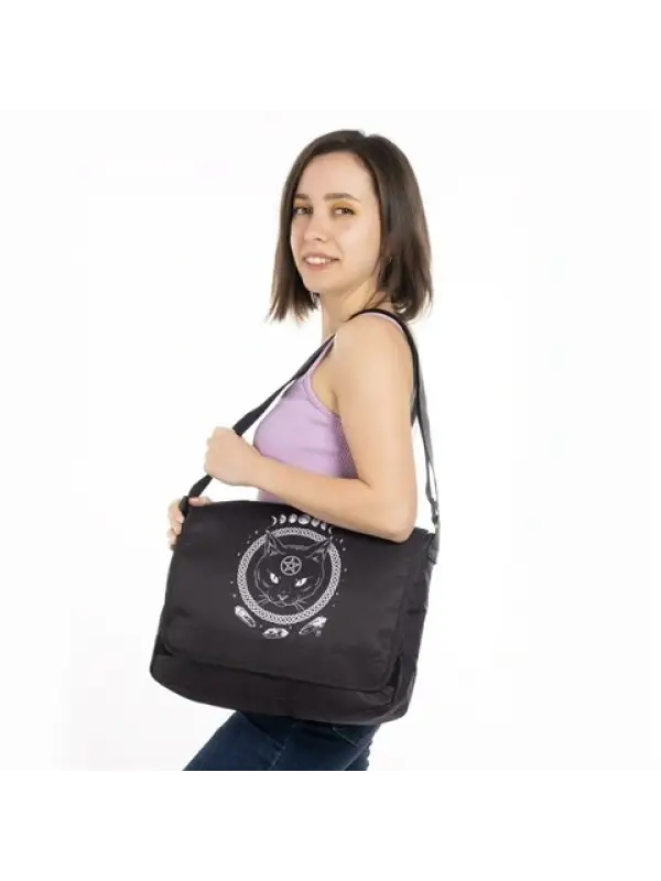Gothic Cat Baskılı Unisex Postacı Çantası