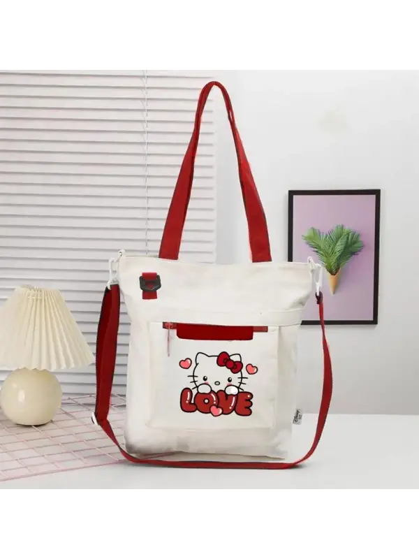 Love Hello Kitty Kırmızı Kanvas Postacı Çantası