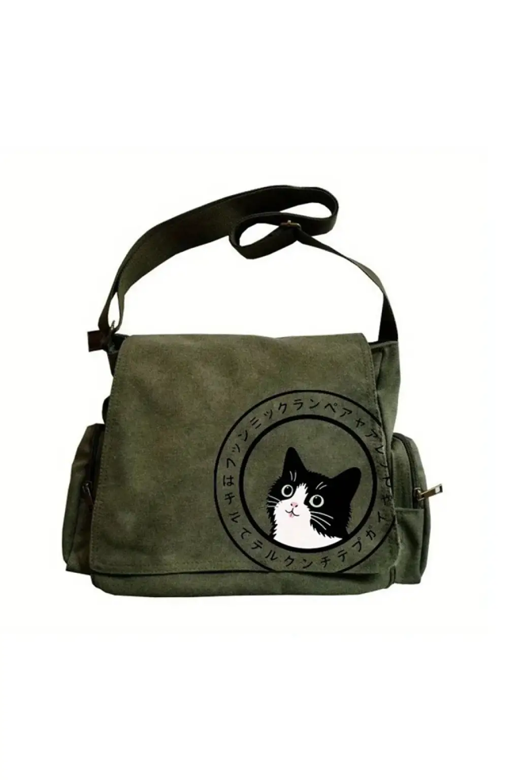 Cute Cat Seriouse Baskılı Unisex Postacı Çantası