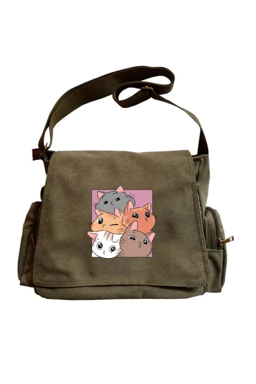 Cute Cat Seriouse Baskılı Unisex Postacı Çantası