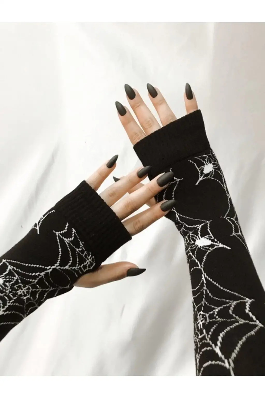 Eldiven kısmı örümcek desenli detaylarla dikkat çeker ve kombinlerinize şıklık katar.