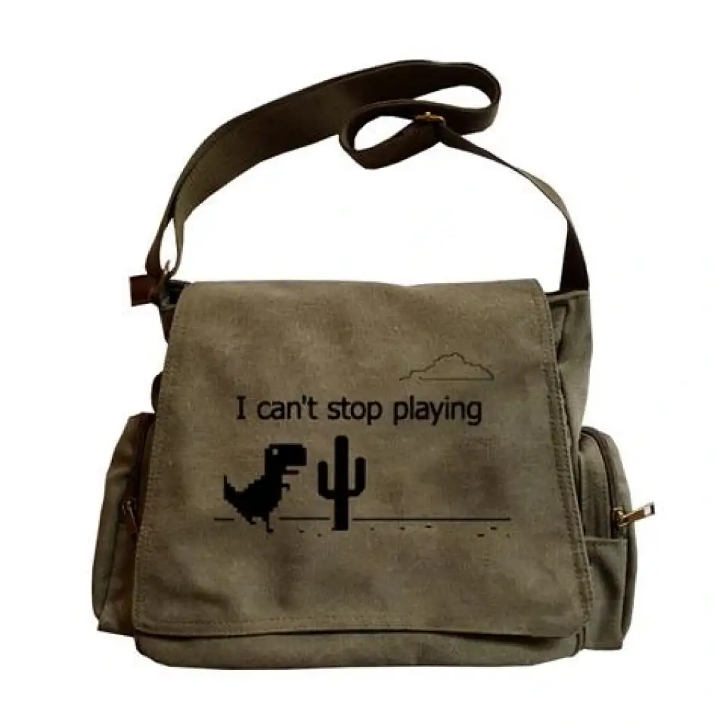 Dinosaur Game Baskılı Unisex Yeşil Postacı Çantası