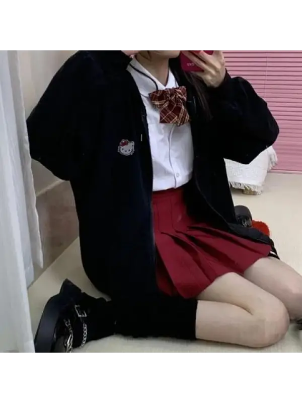 Kuromi Oversize Fermuarlı Siyah Unisex Kapüşonlu Hırka