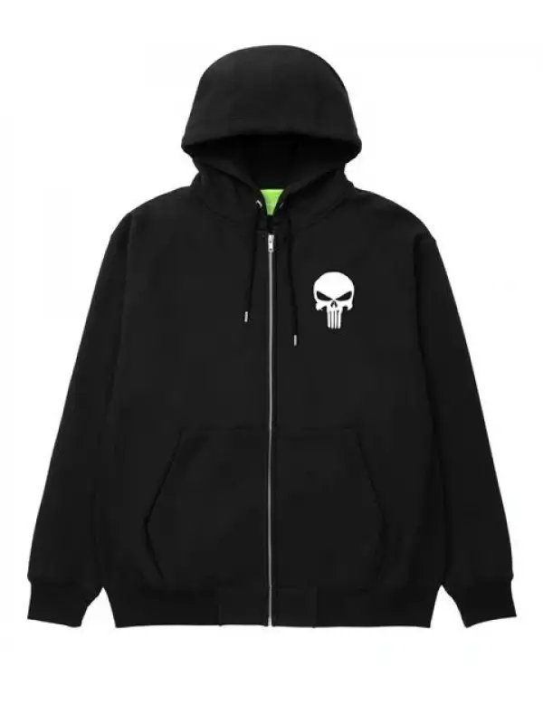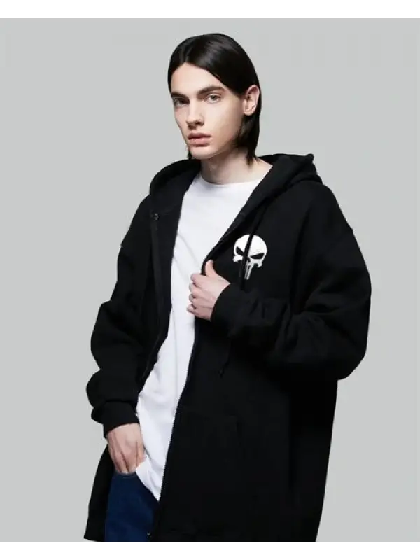 Punisher Baskılı Oversize Fermuarlı Siyah Unisex Kapüşonlu Hırka