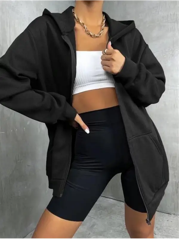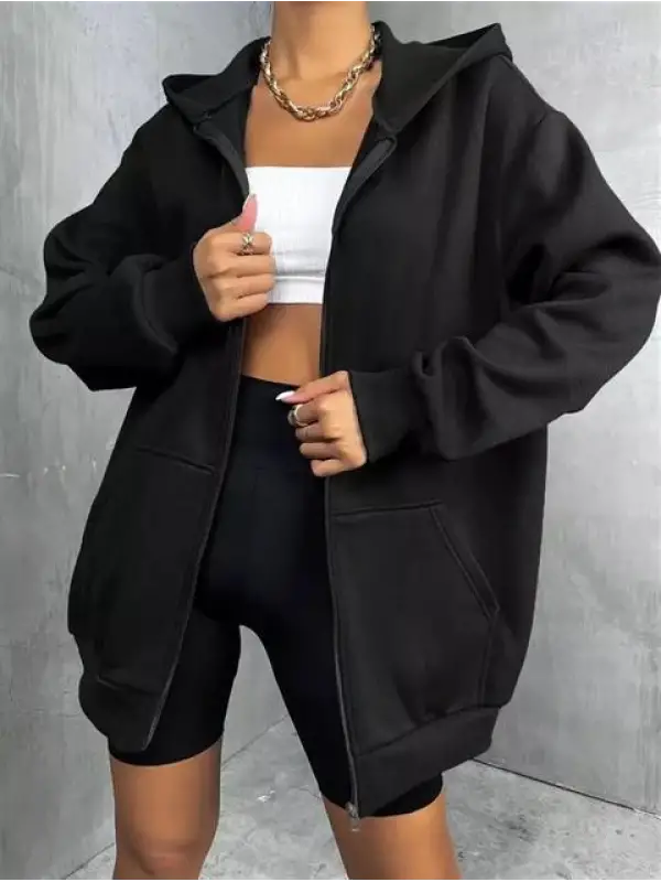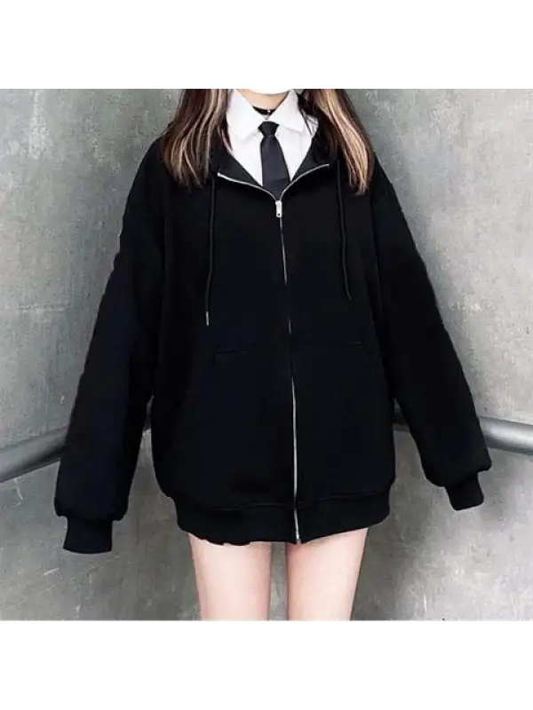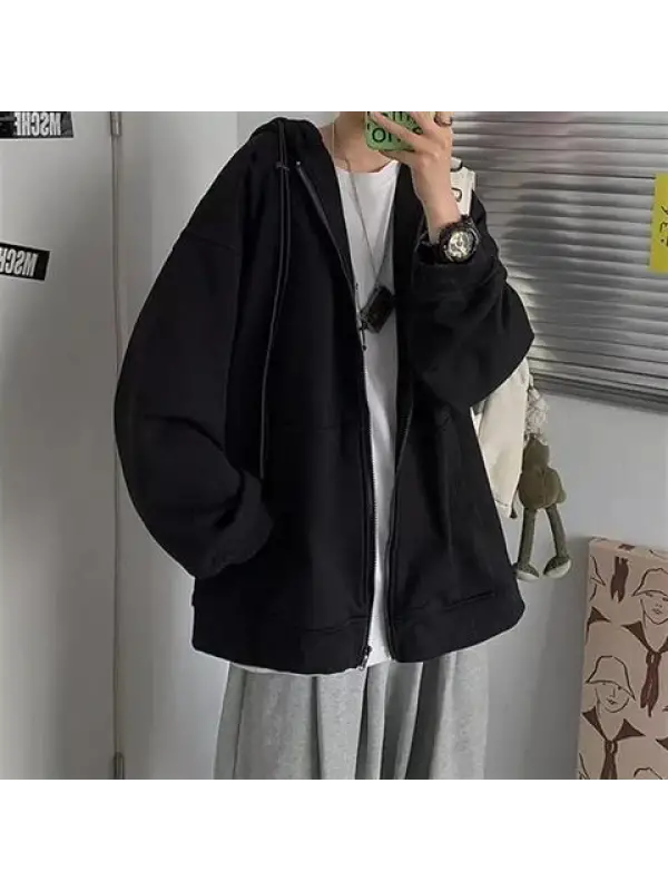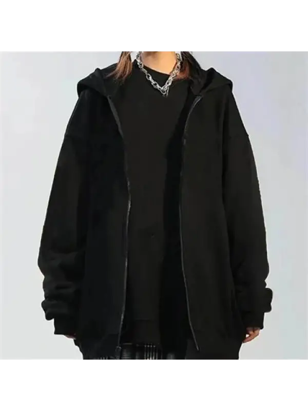 Sokak Tarzı Düz Oversize Siyah Unisex Kapşonlu Hırka