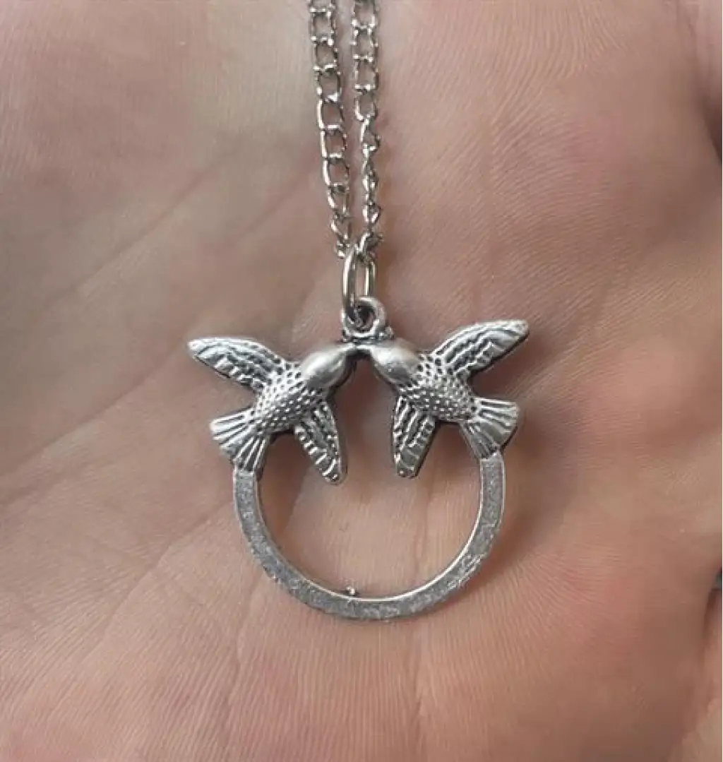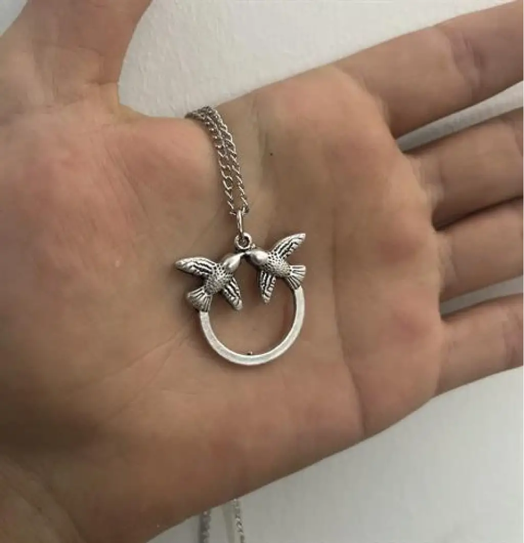 Gümüş Renk Zincirli Kalp Fiyonk İthal Kolye