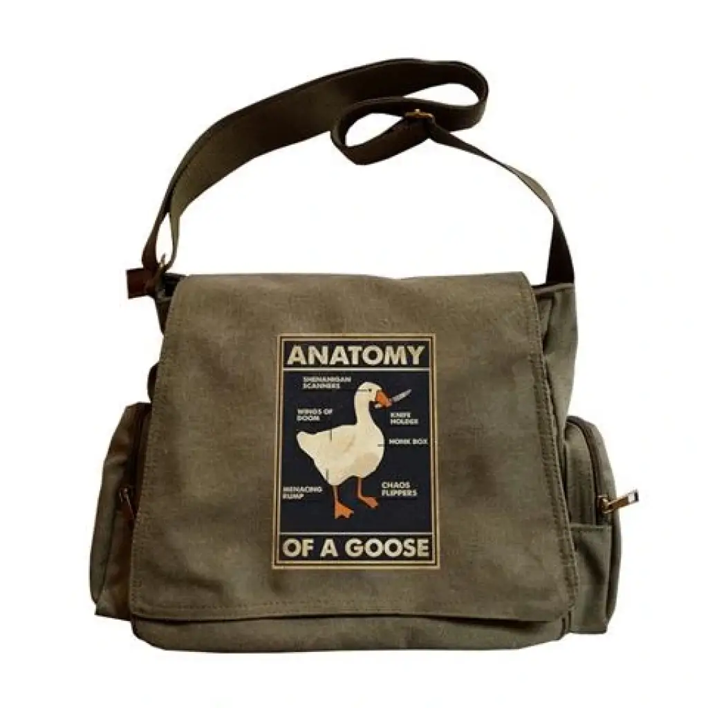 Duck Anatomy Baskılı Unisex Yeşil Postacı Çantası