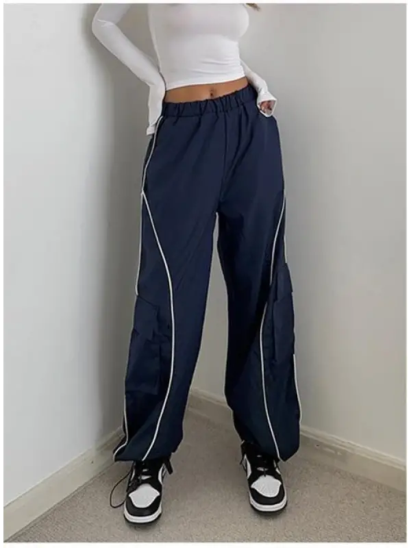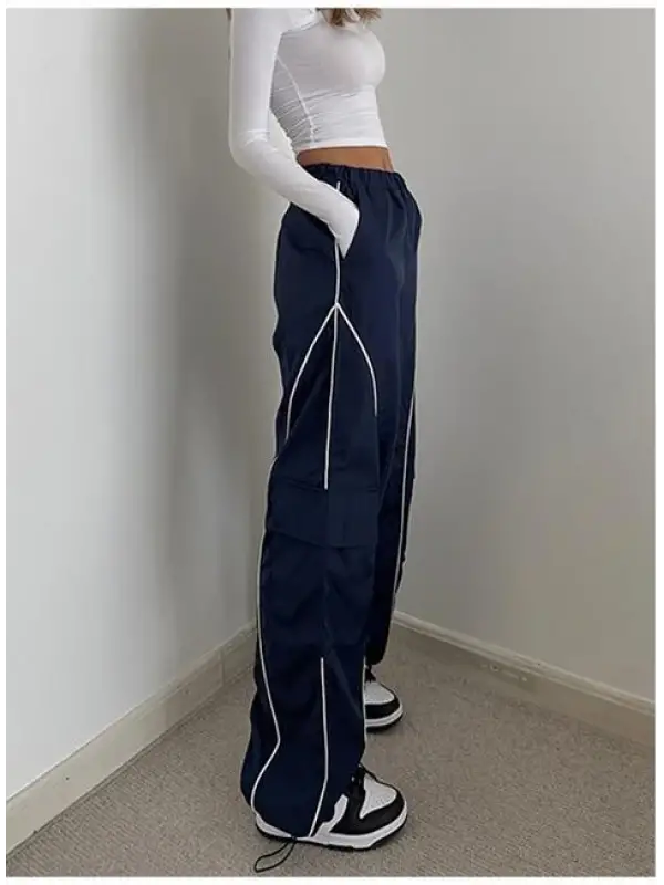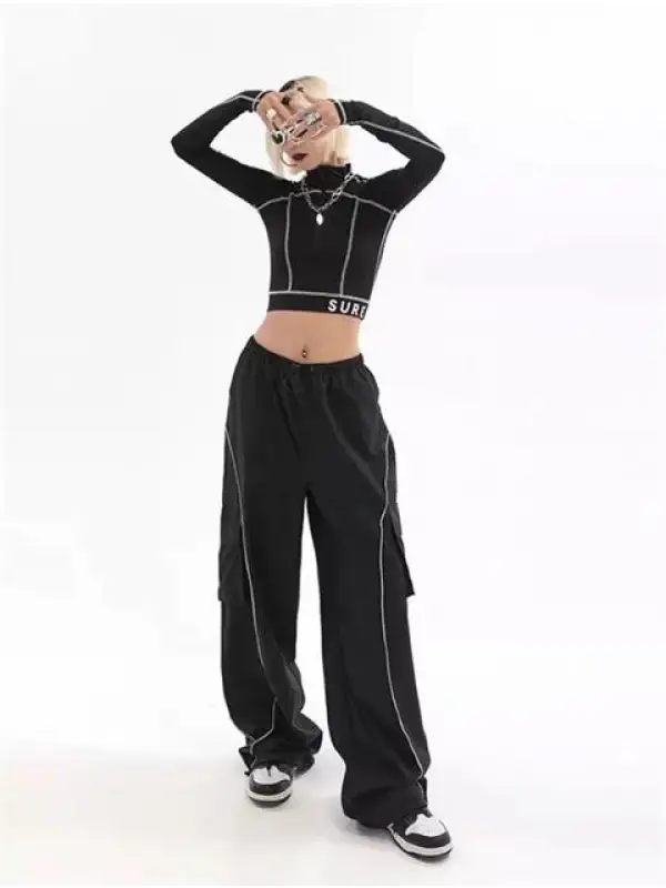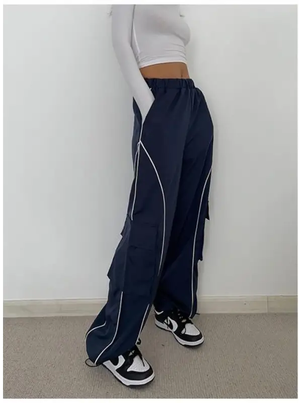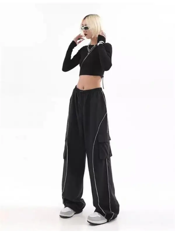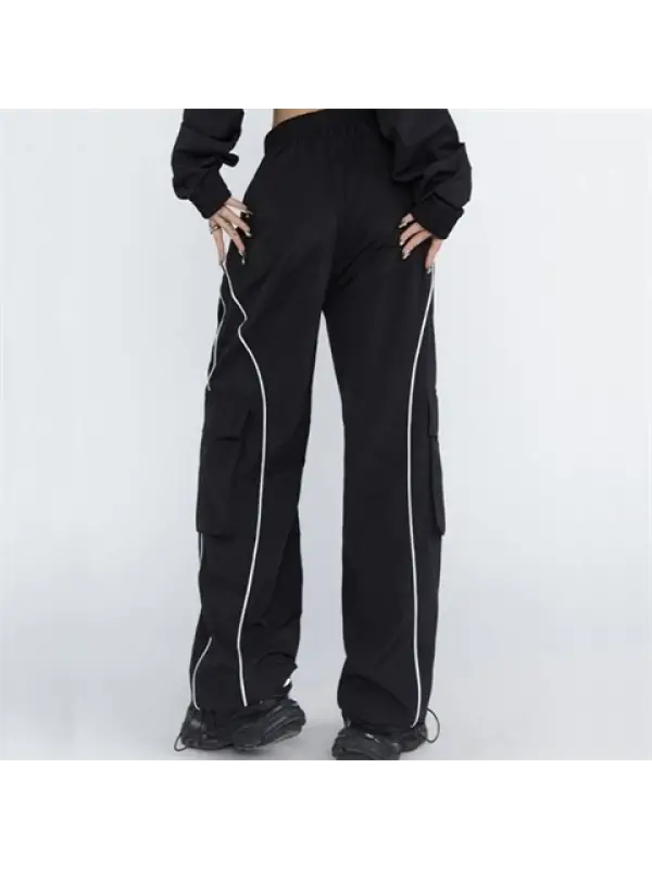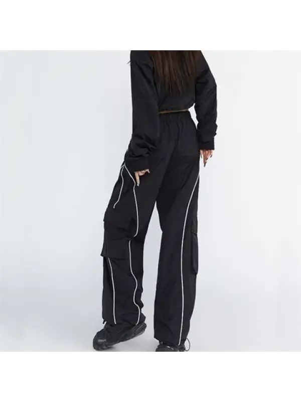 Cargo Pocket Lines Detail Wide Leg Tracksuit