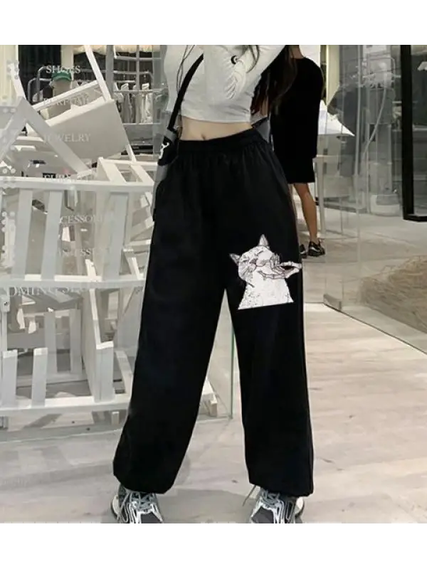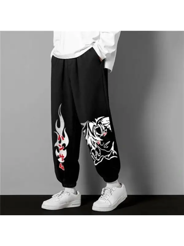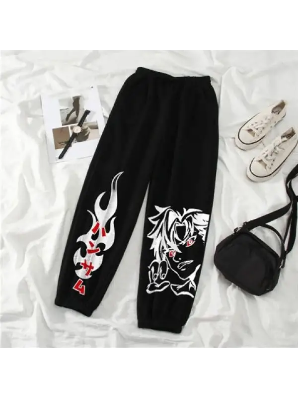 Streetwear Harajuku Anime Boy Baskılı Oversize Unisex Siyah Eşofman Altı