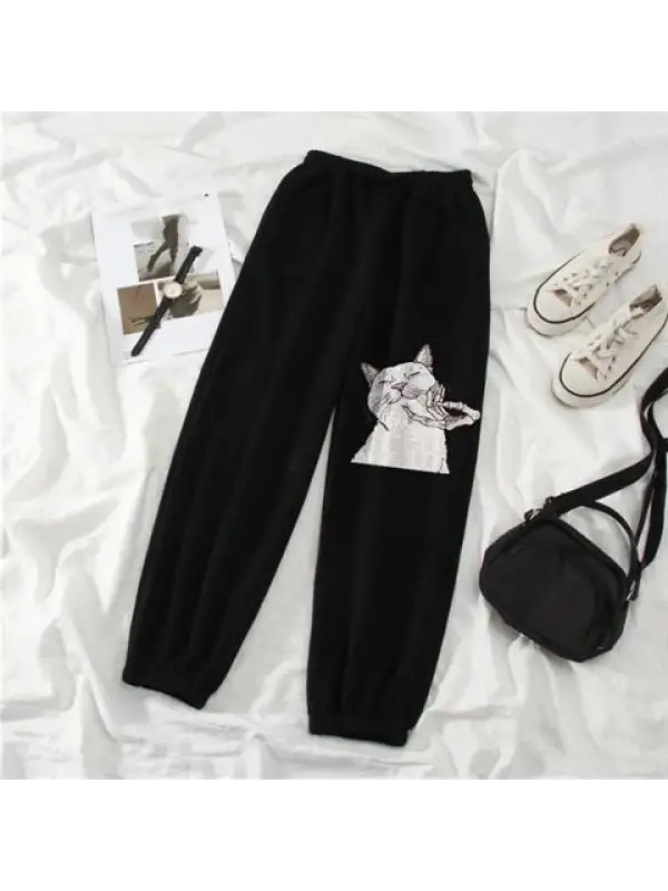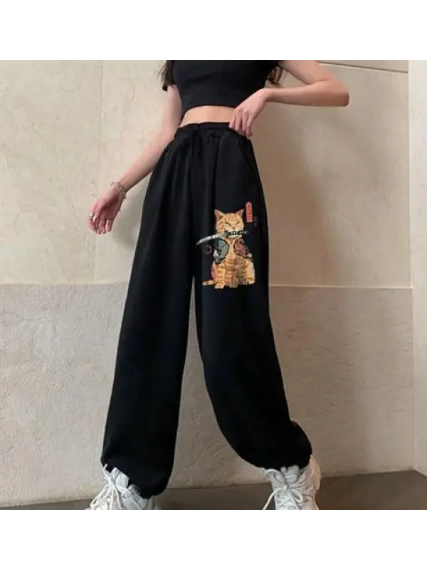 Killer Cat Baskılı Oversize Unisex Siyah Eşofman Altı