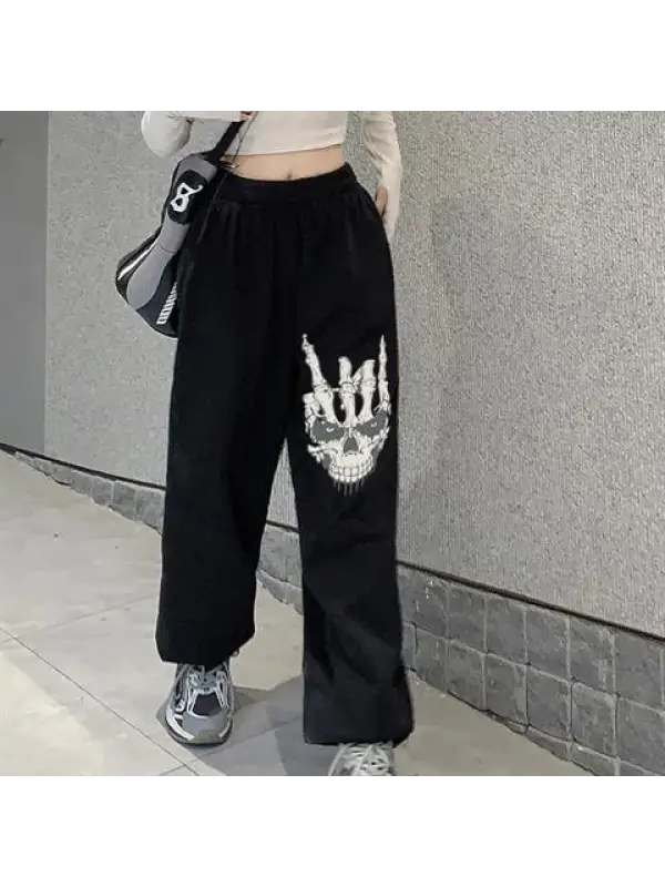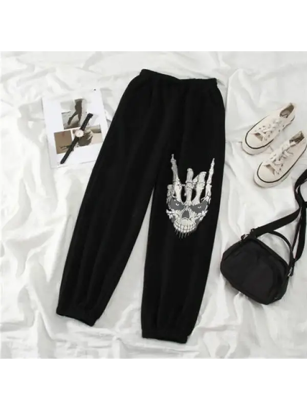Gothic Skull Hand Baskılı Oversize Unisex Siyah Eşofman Altı
