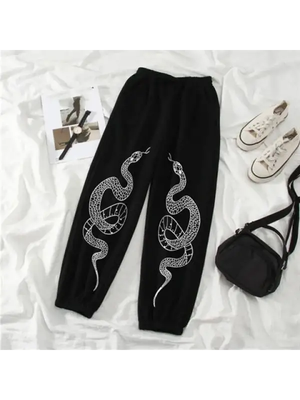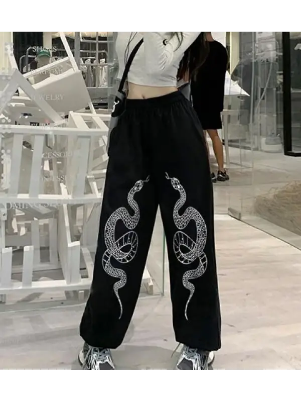 Gothic Snake Baskılı Oversize Unisex Siyah Eşofman Altı