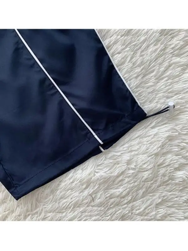 Harajuku Zip Detail Çift Çizgili Navy Blue Tracksuit Oversize Lacivert Eşofman Altı