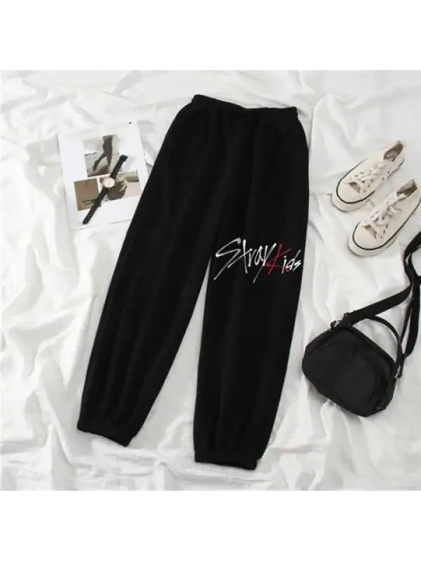 K-Pop Serisi Stray Kids Baskılı Oversize Unisex Siyah Eşofman Altı