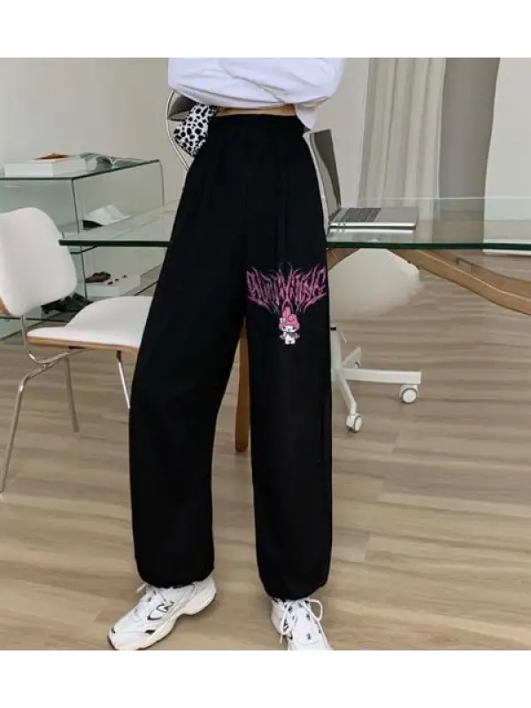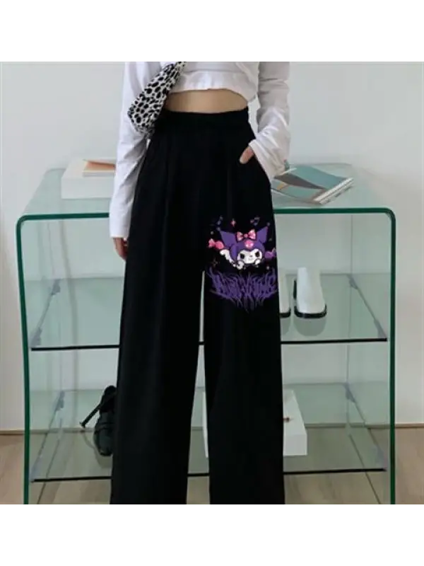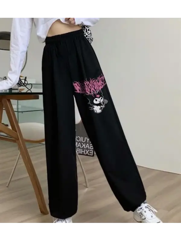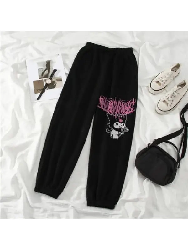 Kuromi Baskılı Oversize Unisex Siyah Eşofman Altı