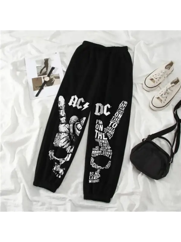 Rock Serisi AC/DC Baskılı Oversize Unisex Siyah Eşofman Altı