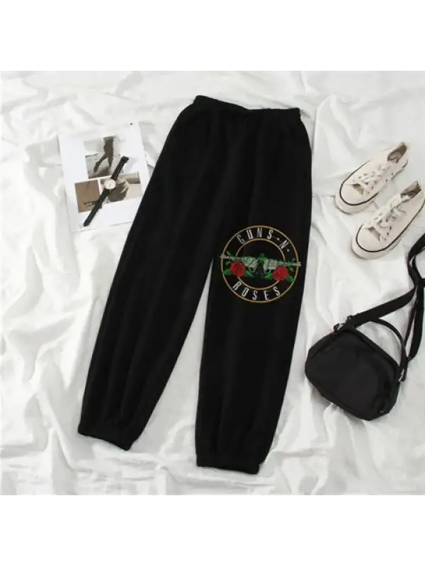 Rock Serisi Guns N Roses Baskılı Oversize Unisex Siyah Eşofman Altı