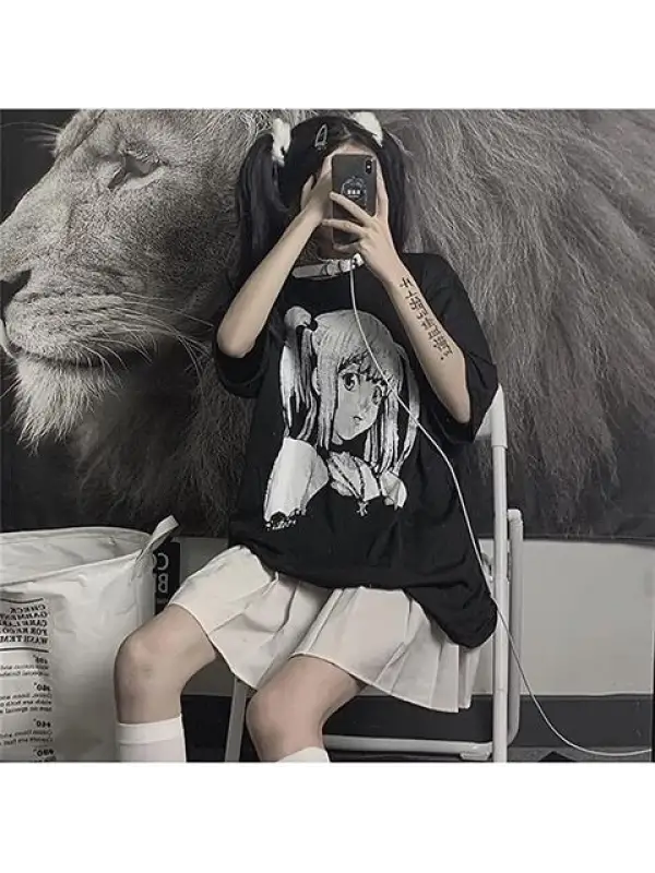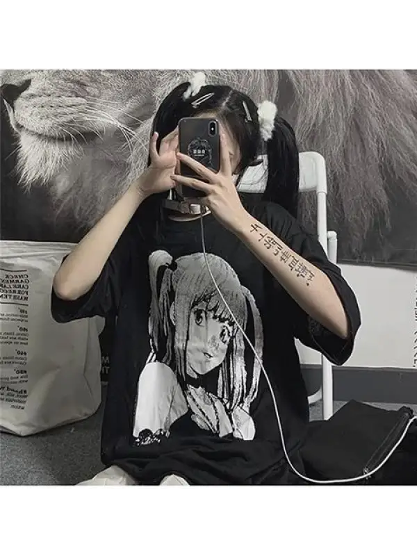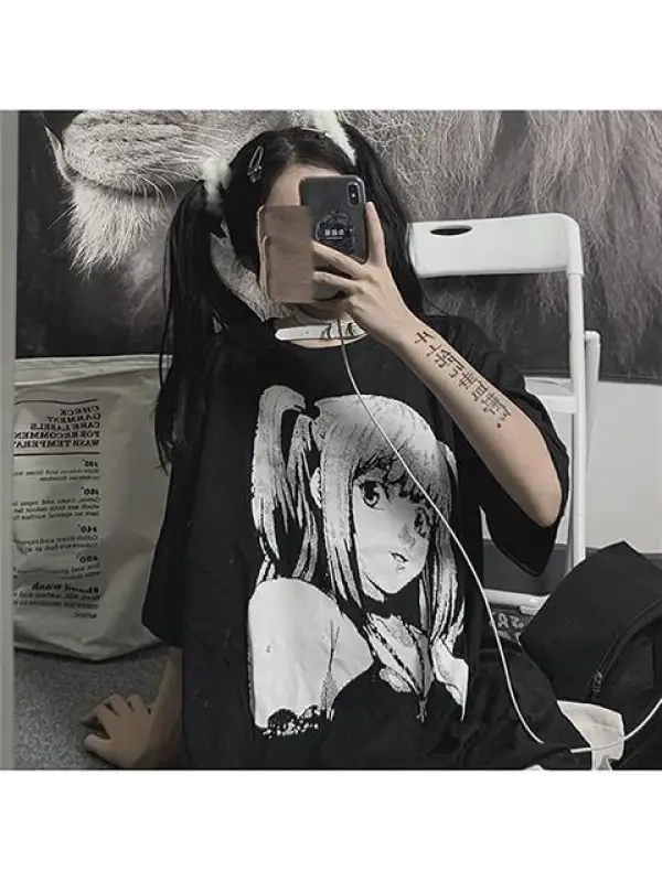 Harajuku Style Anime Death Note Misa Cosplay Kısa Kollu Oversize T Shirt