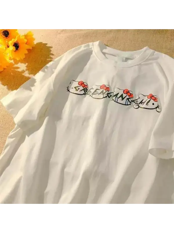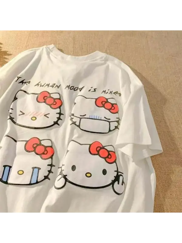 Hello Kitty Baskılı Beyaz Unisex Oversize T-Shirt
