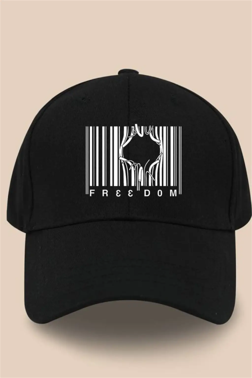 Bu şık şapka, Freedom Siyah Şapka karakterlerinin baskılarıyla dikkat çekiyor. Touz Moda'nın özel koleksiyonundan bir parça olan bu şapka, tarzınıza eşsiz bir dokunuş katacak.