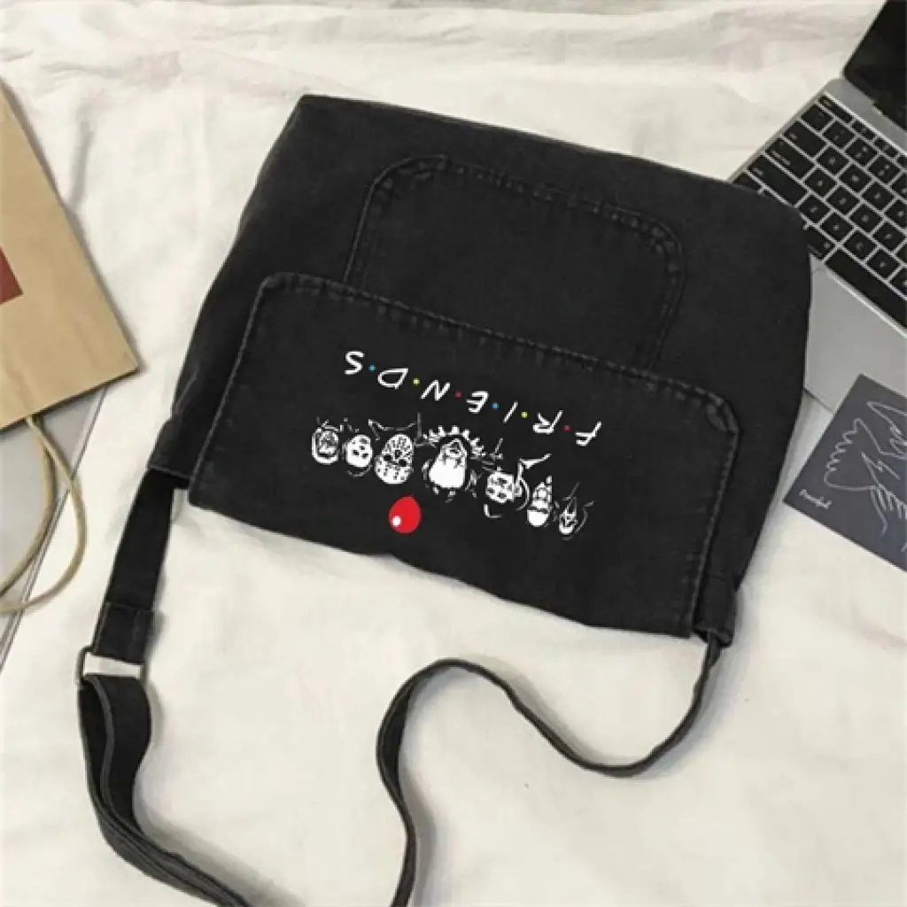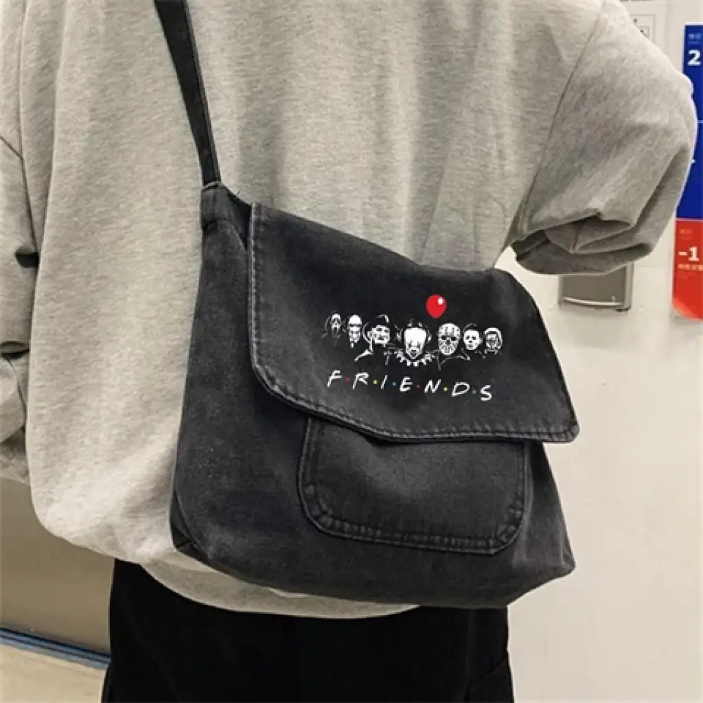 Friends Baskılı Vintage Unisex Gri Kot Postacı Çantası