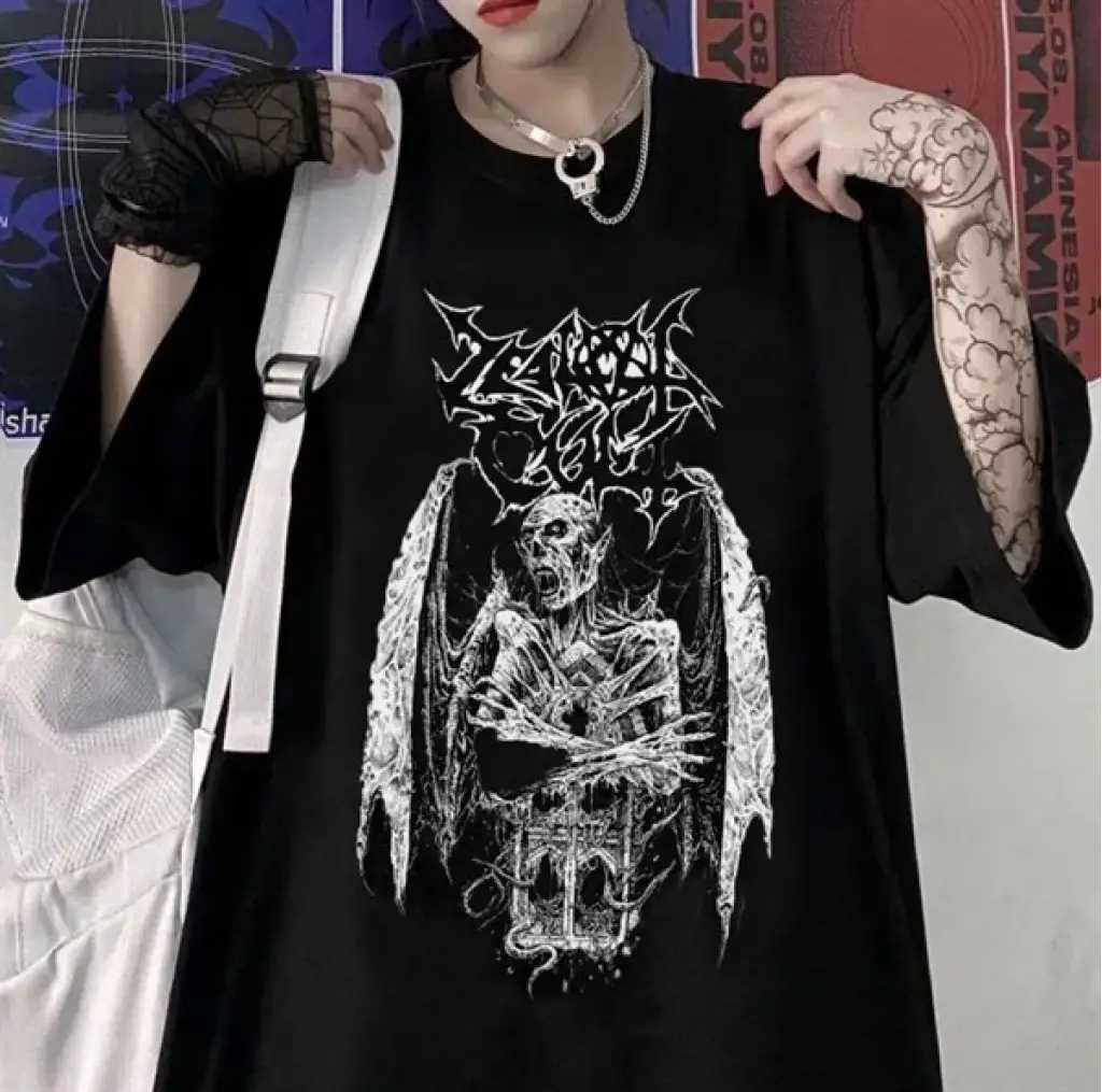 Touz Tekstil Ürünü Gothic Devil Unisex Siyah Oversize Tişört ile Gothic modasını yakalayın, tarzınızla fark yaratın.%100 pamuklu kumas ile nefes alan kumaşla teri emer size konforlu birgün geçirmenizi sağlar. Hem Kumaş hemde baskısı kalite garantilidir. Beden bilgileri aşağıda mevcuttur.