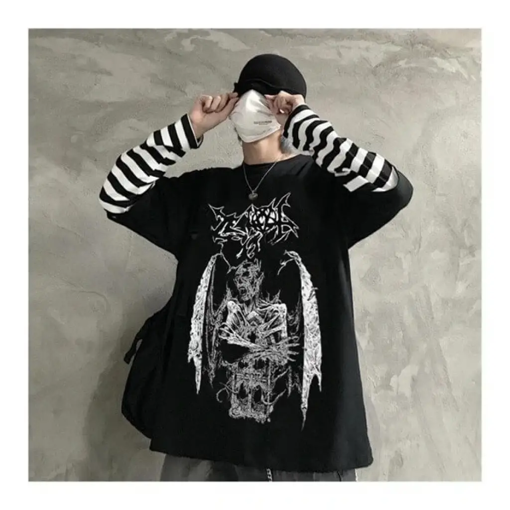 Touz Tekstil Ürünü Gothic Devil Unisex Siyah Oversize Uzun Kollu T-Shirt ile Gothic modasını yakalayın, tarzınızla fark yaratın.%100 pamuklu kumas ile nefes alan kumaşla teri emer size konforlu birgün geçirmenizi sağlar. Hem Kumaş hemde baskısı kalite garantilidir. Beden bilgileri aşağıda mevcuttur.