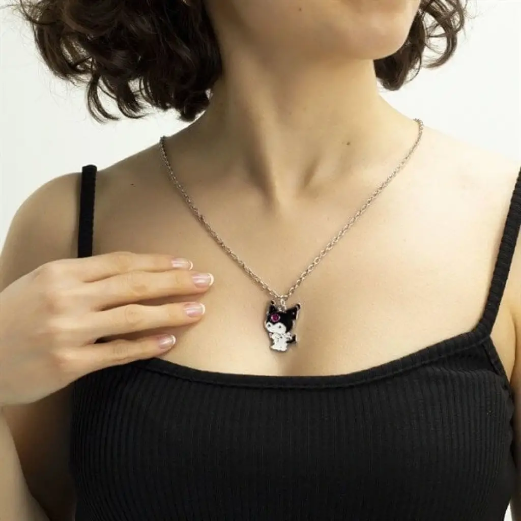 Gümüş Renk Zincirli Siyah Kalp Pençe İthal Kolye