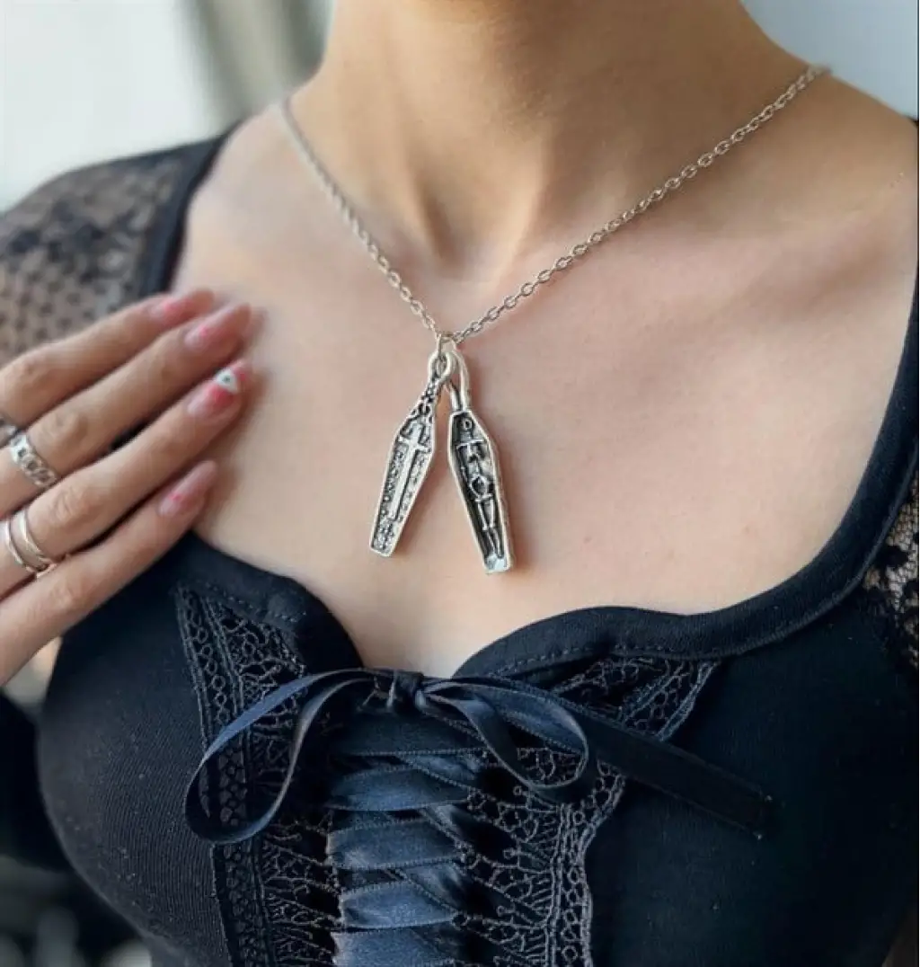 Gümüş Renk Zincirli Siyah Kalp Pençe İthal Kolye